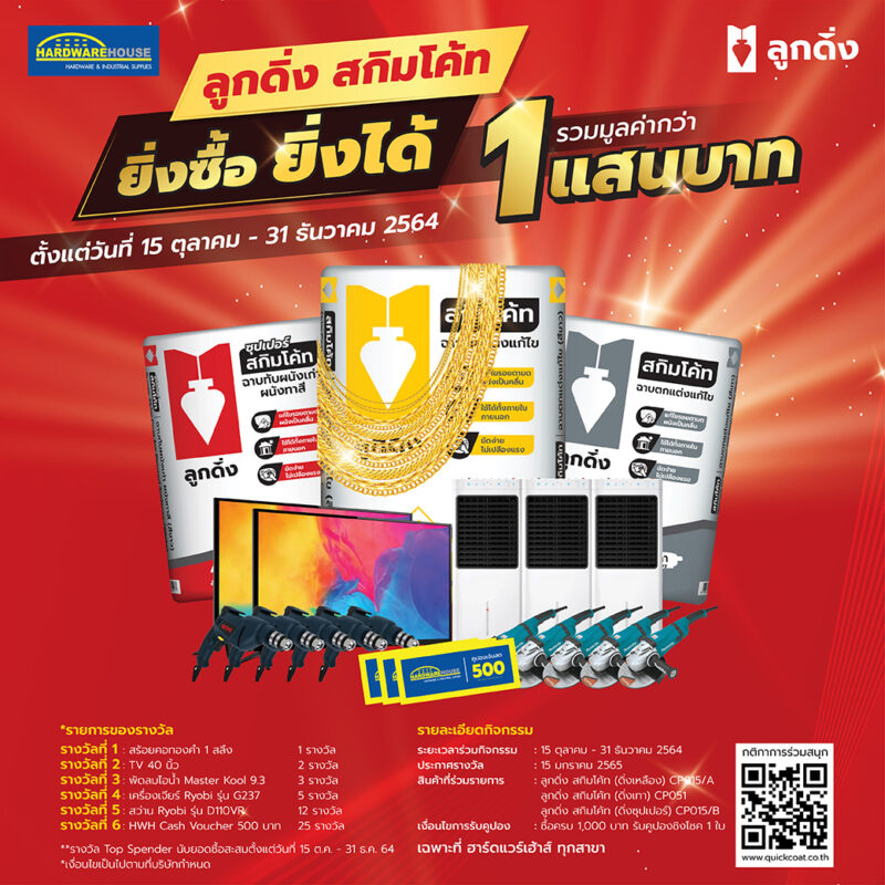 🎯เพียงคุณเป็นลูกค้าฮาร์ดแวร์เฮ้าส์ ซื้อสินค้าลูกดิ่งสกิมโค้ท ชนิดใดก็ได้ รับสิทธิ์ ลุ้นเงินแสน ทันที