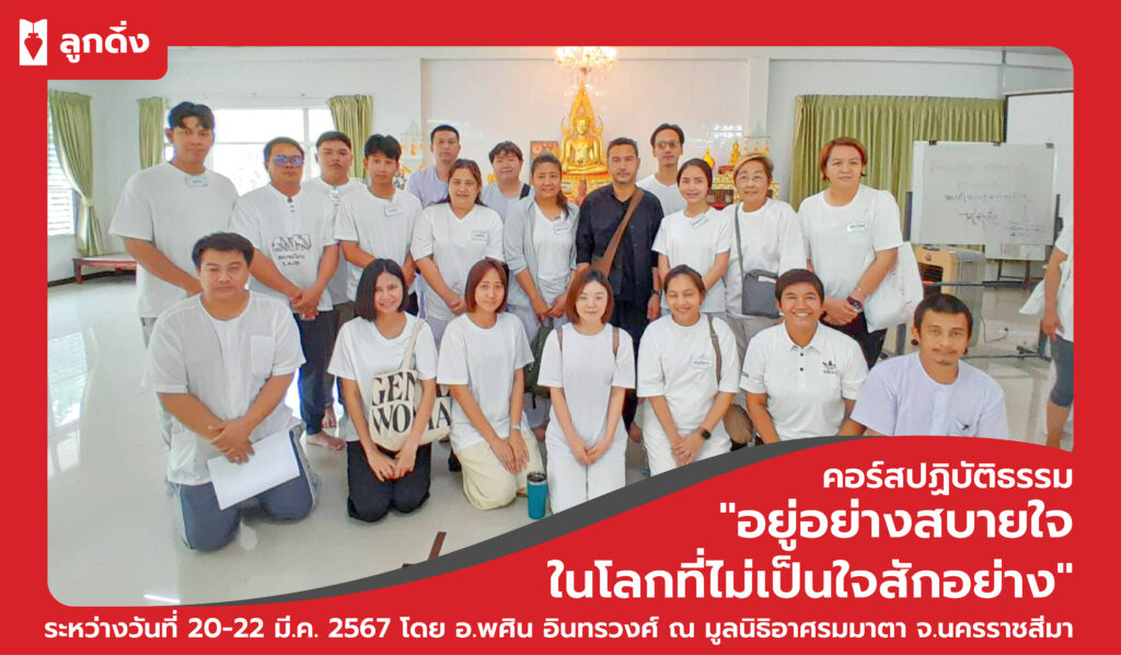 โดยในการปฏิบัติธรรมรอบนี้ เป็นพนักงานรุ่นที่ 3 ของบริษัทฯ เข้ารับการฝึกปฏิบัติธรรมในหัวข้อ “อยู่อย่างสบายใจ ในโลกที่ไม่เป็นใจสักอย่าง” จัดขึ้นที่ มูลนิธิอาศรมมาตา จ.นครราชสีมา เป็นคอร์สปฏิบัติธรรมที่ได้รับเกียรติจาก อ.พศิน อินทรวงศ์ (นักเขียนหนังสือธรรมะ) ซึ่งจุดเด่นของคอร์สปฏิบัติธรรมนี้คือ การเดินธุงดงค์ป่าเพื่อทำสมาธิบนเขา เพื่อหาสถานที่อันสัปปายะ เจริญสมณธรรม เป็นระยะเวลา 3 วัน 2 คืน ในวันที่ 20-22 มีนาคม 2567 เพื่อให้เกิดความสงบในจิตใจ เสริมสร้างสติ และสมาธิ ปิดวาจา อยู่กับตัวเอง และอยู่กับปัจจุบัน