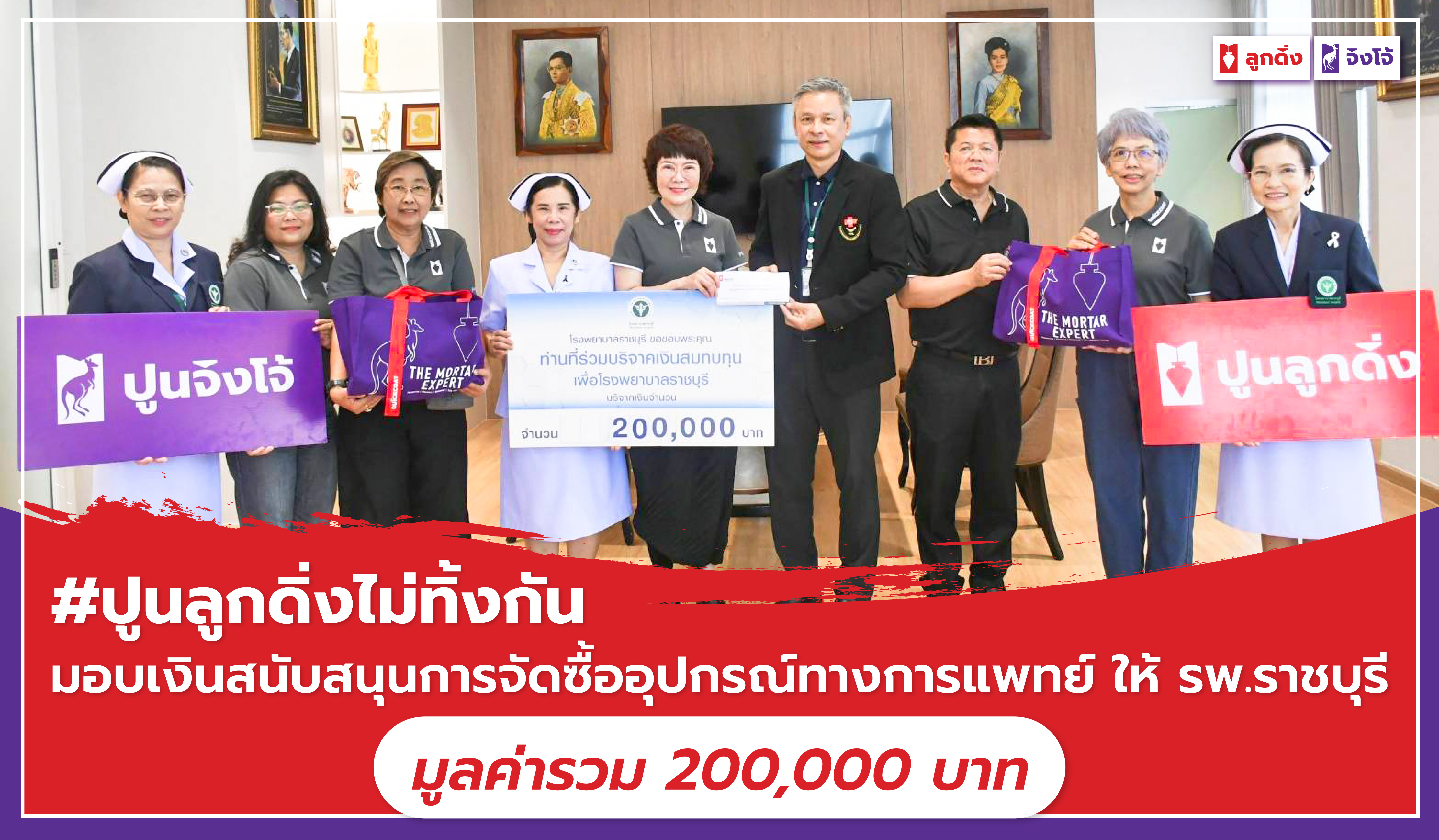 #ปูนลูกดิ่งปูนจิงโจ้ไม่ทิ้งกัน มอบเงินทุนสนับสนุน ให้โรงพยาบาลราชบุรี เงินจำนวน 200,000 บาท
