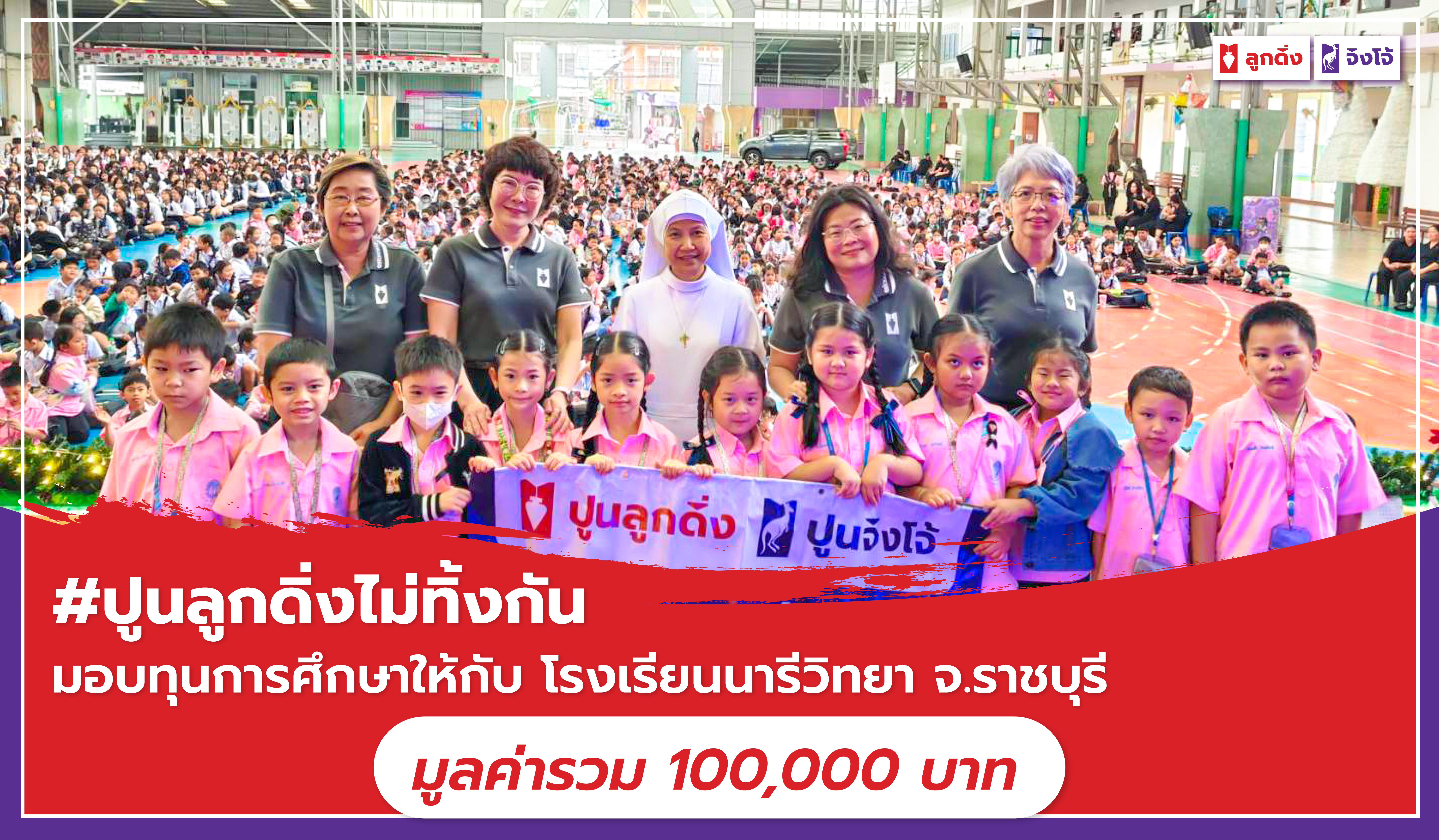 ปูนลูกดิ่ง ปูนจิงโจ้ สนับสนุนทุนการศึกษาให้โรงเรียนนารีวิทยา จ.ราชบุรี จำนวนเงิน 100,000 บาท