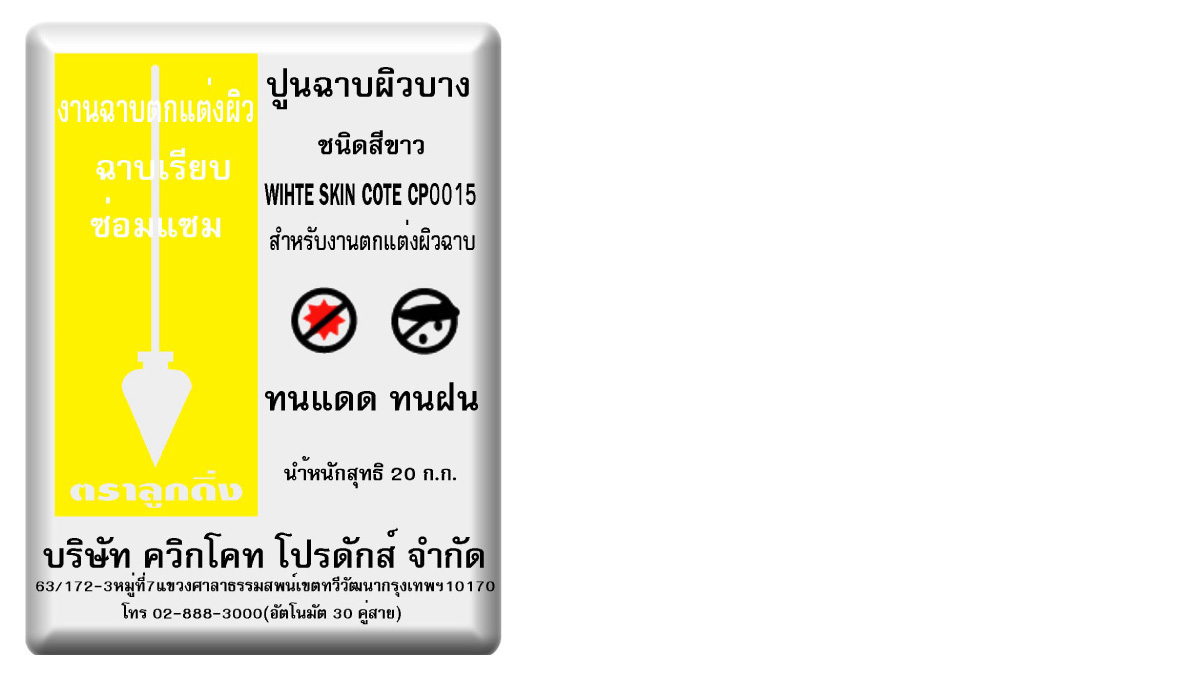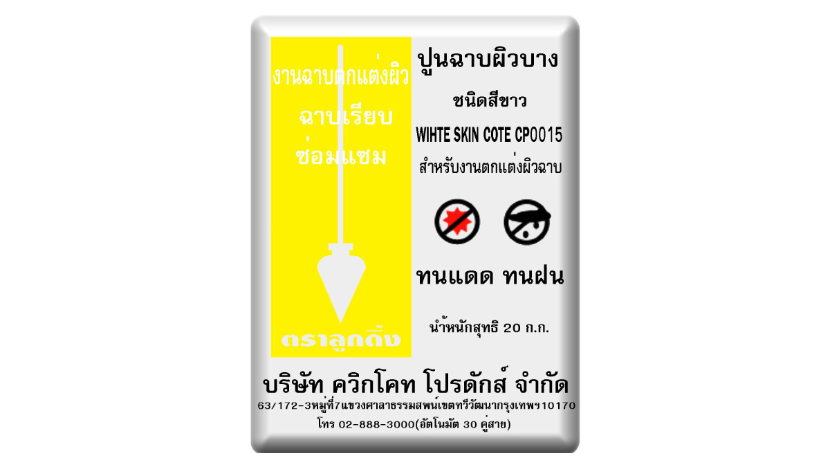 เราคือผู้บุกเบิก ปูนฉาบผิวบาง หรือ สกิมโค้ท เจ้าแรกในประเทศไทย ปูนฉาบผิวบางตราลูกดิ่ง หรือ ดิ่งเหลืองด้วยคุณสมบัติการฉาบที่นุ่มลื่นมือ ขัดง่ายไม่เปลืองแรง และยังสามารถแก้ไขปัญหาผิวผนังที่ไม่เรียบเนียน รอยแตก Hair crack รอยตามดหรือผนังเป็นคลื่นได้ ทำให้ช่างไทยยกให้เป็น “สุดยอดปูนเก็บงาน” คลองยอดขายอันดับ 1 ตลอดมา