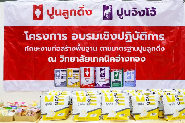 ปูนลูกดิ่ง ร่วมกับ วิทยาลัยเทคนิคอ่างทอง จัดโครงการอบรมเชิงปฏิบัติการอาชีพ แบบครบหลักสูตร งานก่อ-ฉาบ สกิมโค้ท และงานกาวซีเมนต์กระเบื้อง ตามมาตรฐานปูนลูกดิ่ง ในวันวันที่ 18 กรกฎาคม 2566 ให้กับคณะอาจารย์และนักศึกษาที่สนใจ โดยมีวัตถุประสงค์ให้ผู้ที่เข้าร่วมโครงการมีความรู้ความสามารถในทักษะด้านงานก่อสร้าง ซึ่งความรู้จากหลักสูตรที่สอนนั้น คณะอาจารย์และนักศึกษา สามารถนำไปใช้ในการทำงานและนำไปประกอบอาชีพเพื่อสร้างรายได้เสริมให้ตัวเองและครอบครัวได้ นอกจากนี้ทางปูนลูกดิ่งยังมีของรางวัลและสินค้าพรีเมี่ยมสุดพิเศษ ไปมอบให้กับทางคณะอาจารย์ วิทยาลัยเทคนิคอ่างทอง และมอบให้น้องๆ นักศึกษาที่เข้าร่วมอบรมในวันนี้ด้วย