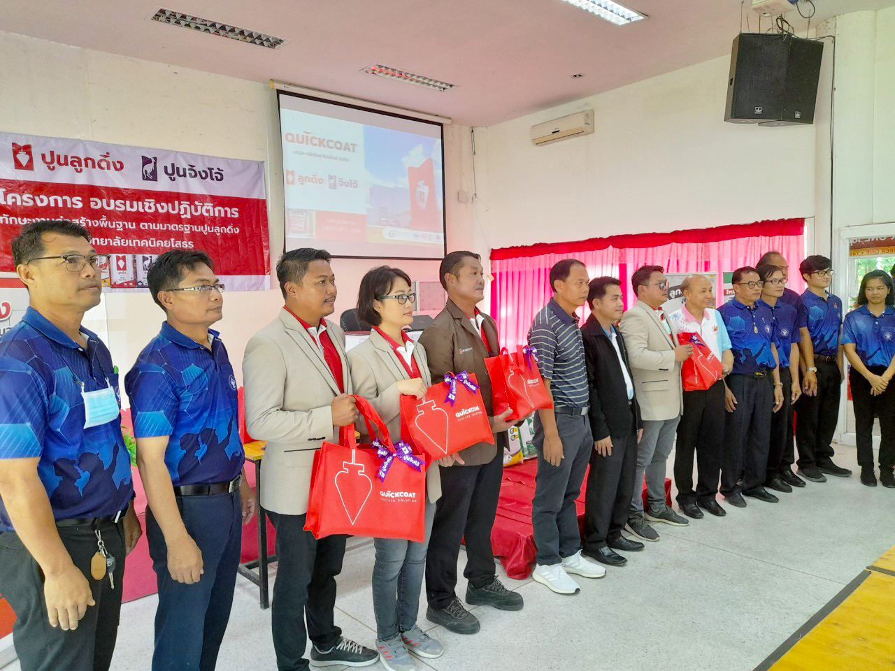 ปูนลูกดิ่ง ร่วมกับ วิทยาลัยเทคนิคยโสธร  จัดโครงการอบรมเชิงปฏิบัติการอาชีพแบบครบหลักสูตร งานก่อ-ฉาบ สกิมโค้ท และงานกาวซีเมนต์กระเบื้อง ตามมาตรฐานปูนลูกดิ่ง ปูนจิงโจ้  ในวันที่ 16 สิงหาคม 2566 ให้กับคณะอาจารย์และนักศึกษาที่สนใจ โดยมีวัตถุประสงค์ให้ผู้ที่เข้าร่วมโครงการมีความรู้ความสามารถในทักษะด้านงานก่อสร้างเบื้องต้น ซึ่งความรู้จากหลักสูตรที่สอนนั้น สามารถนำไปใช้ในการทำงานและนำไปประกอบอาชีพเพื่อสร้างรายได้เสริมให้ตัวเองและครอบครัวได้ นอกจากนี้ทางปูนลูกดิ่งได้มอบของรางวัล สินค้าพรีเมี่ยมสุดพิเศษ ให้กับทางคณะอาจารย์ และน้องๆ นักศึกษาที่เข้าร่วมอบรมครั้งนี้อีกด้วย