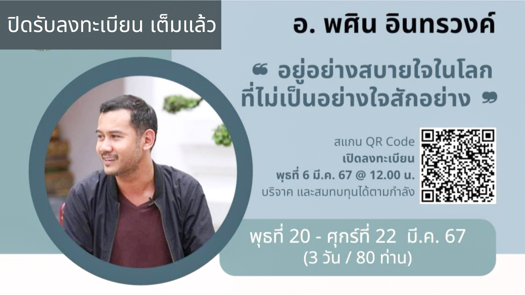 ควิกโคท Happy Soul คอร์สปฏิบัติธรรม “อยู่อย่างสบายใจในโลกที่ไม่เป็นใจสักอย่าง” ระหว่างวันที่ 20-22 มี.ค. 2567