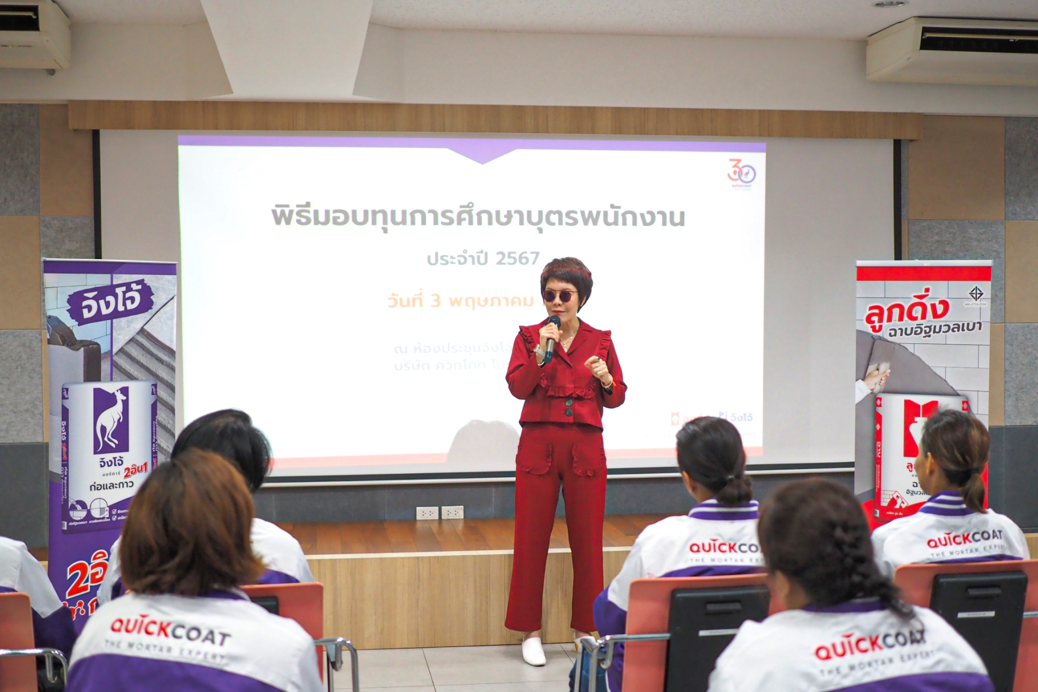 ปูนลูกดิ่ง ปูนจิงโจ้ จัดกิจกรรมมอบทุนการศึกษาให้กับบุตรของพนักงานประจำปี 2567 โดยได้มอบทุนการศึกษาจำนวนทั้งสิ้น 54 ทุน ซึ่งคัดเลือกจากพนักงานที่มีผลงานดีเด่น ประจำสำนักงานใหญ่ จ.นนทบุรี และโรงงานผลิต จ.ราชบุรี