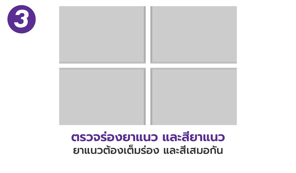 - ยาแนวควร เต็มร่อง ไม่มีโพรง รอยแหว่ง หรือจุดที่หลุดร่อน