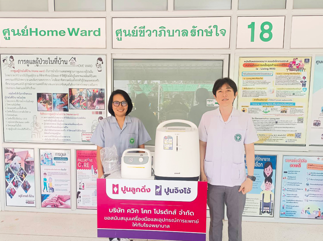 คุณประภารัตน์ สิริวัฒกานนท์ ประธานกรรมการบริหาร บริษัท ควิกโคท โปรดักส์ จำกัด ได้ร่วมกับสมาคมพยาบาลแบบประคับประคอง ผู้ประสานงานให้การรับบริจาคเครื่องมือและอุปกรณ์ทางการแพทย์ เพื่อใช้ในการดูแลผู้ป่วยแบบประคับประคอง โดยมอบให้โรงพยาบาล 12 แห่ง ในพื้นที่ต่างจังหวัด รวมมูลค่า 204,712 บาท เพื่อสนับสนุนการทำงานของบุคลากรทางการแพทย์ในการดูแลผู้ป่วย โดยมีรายชื่อโรงพยาบาล ดังนี้