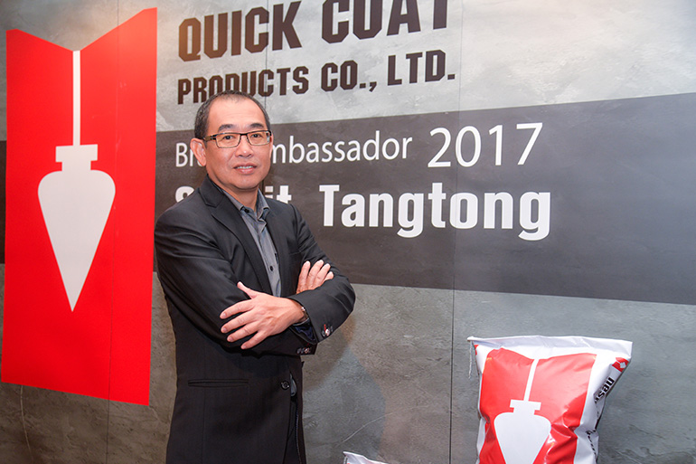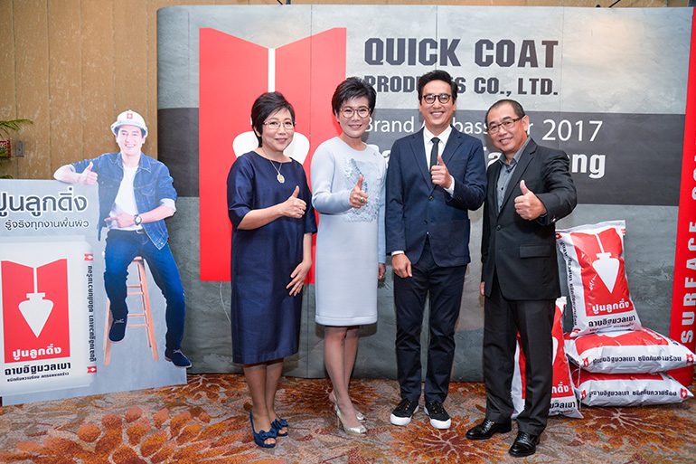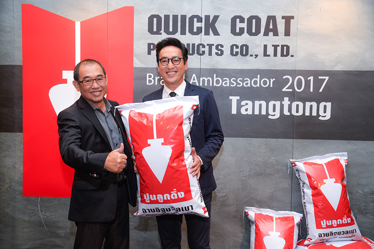 ทำให้บริษัท ควิกโคท โปรดักส์ จำกัด ผู้ผลิตเเละจัดจำหน่าย “ปูนฉาบอิฐมวลเบาตราลูกดิ่ง” มายาวนานกว่า 23 ปี เป็นผลิตภัณฑ์ในใจที่อยู่อันดับต้นๆของลูกค้ากลุ่มช่างและผู้รับเหมาที่มีความเชื่อมั่นในคุณภาพของผลิตภัณฑ์ปูนประเภทต่างๆภายใต้ตราสินค้า “ปูนลูกดิ่ง” จึงมีการปรับภาพลักษณ์แบรนด์ให้เข้าถึงกลุ่มเป้าหมายมากยิ่งขึ้น ผ่านกิจกรรรมทางการตลาดอย่างจริงจัง ต่อเนื่อง และสร้างการจดจำ เพื่อหวังชิงส่วนเเบ่งในตลาดปูนฉาบอิฐมวลเบา ทั้งจากลูกค้ากลุ่มตัวแทนจำหน่าย ผู้รับเหมาโครงการ ผู้พัฒนาและบริหารโครงการอสังหาริมทรัพย์ ผู้บริโภคที่กำลังมองหาที่อยู่อาศัยหรือปรับปรุงซ่อมแซมที่อยู่อาศัย และผู้ที่มีส่วนตัดสินในวงการก่อสร้าง ในโอกาสนี้จึงได้มีการแต่งตั้งให้นายศักดิ์สิทธิ์ เเท่งทอง เป็นตัวเเทนของเเบรนด์ และทำหน้าที่สื่อสารผ่านกิจกรรมการตลาดของควิกโคท โปรดักส์ ตลอดทั้งปี