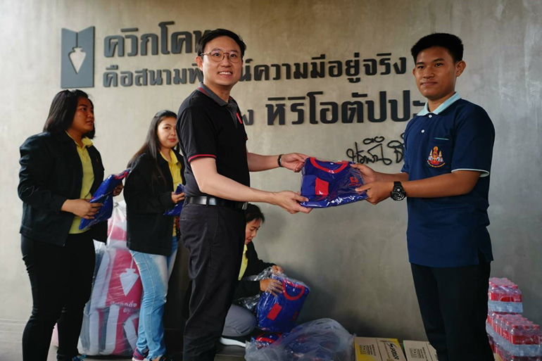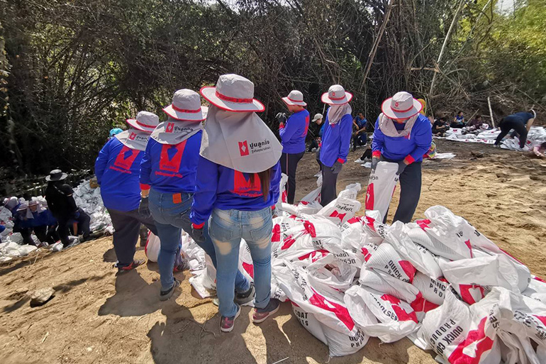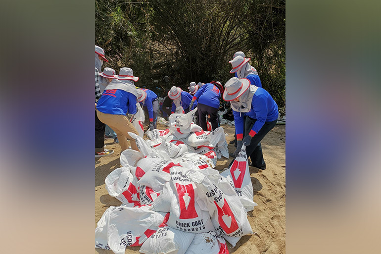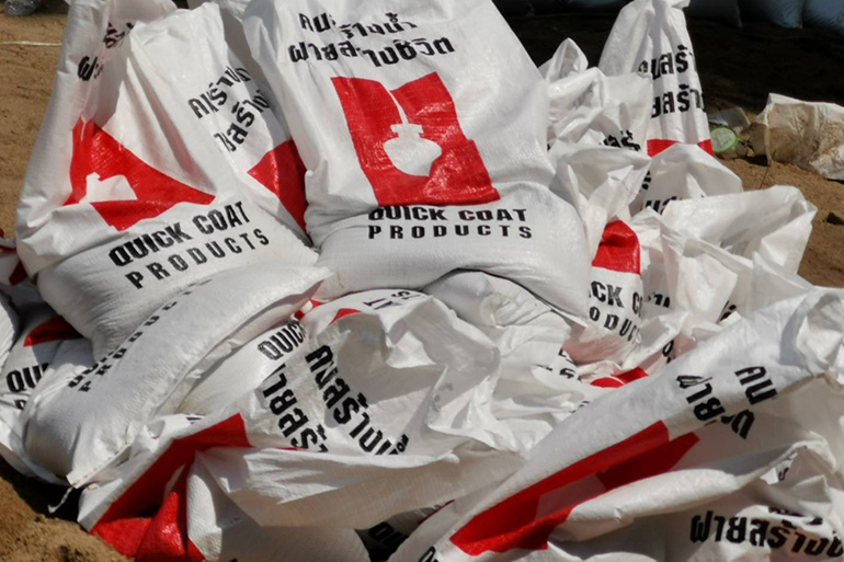 บริษัท ควิกโคท โปรดักส์ จำกัด ร่วมสนับสนุนถุงปูนเพื่อใช้ในการทำฝาย และร่วมส่งอุปกรณ์สำหรับใช้ในกิจกรรมจิตอาสาช่วยสร้างฝายมีชีวิต