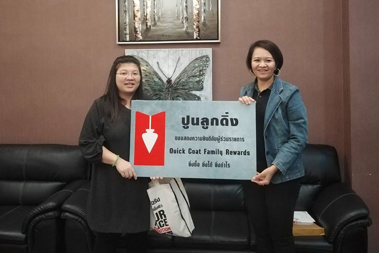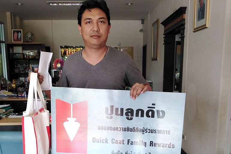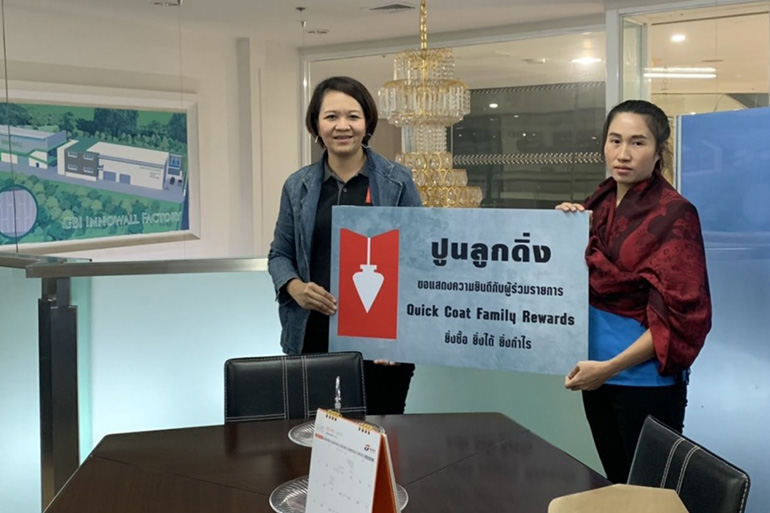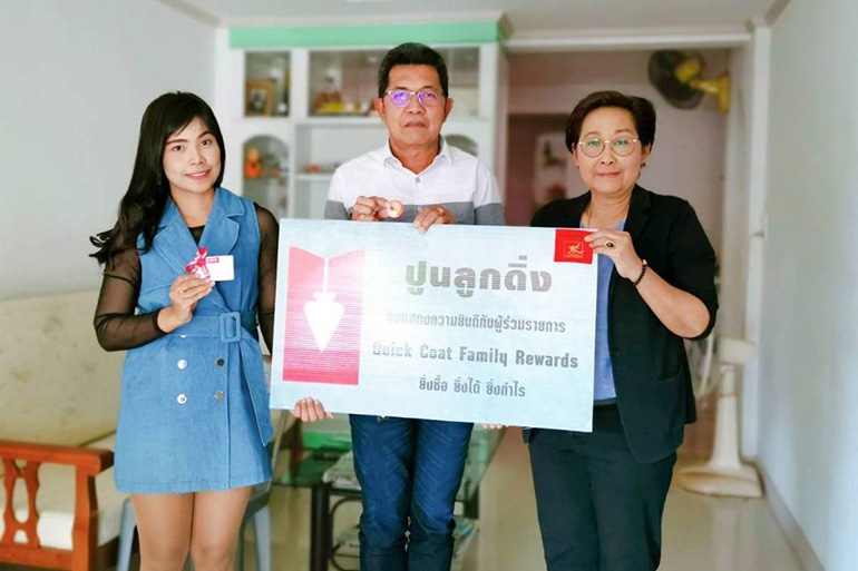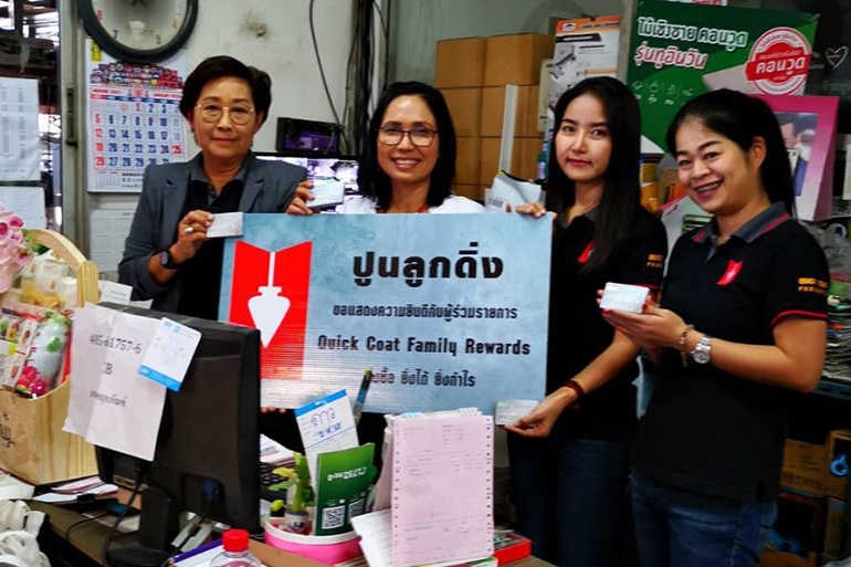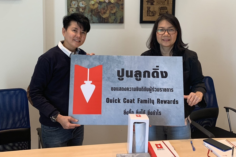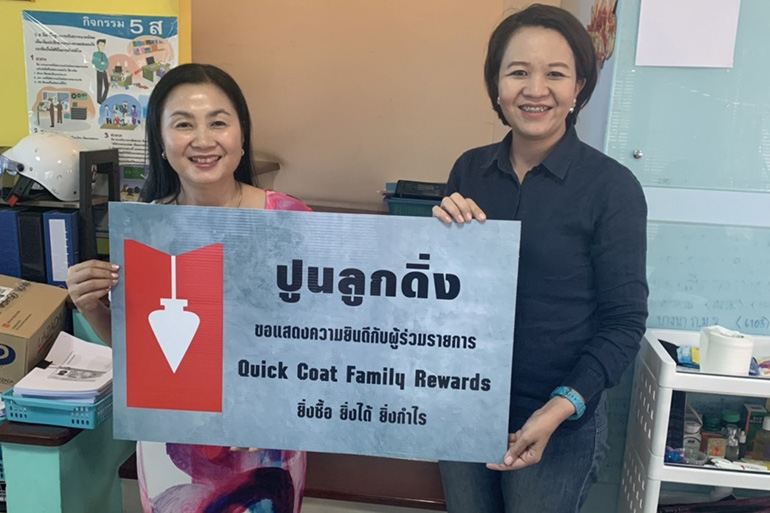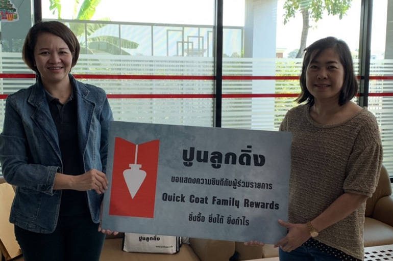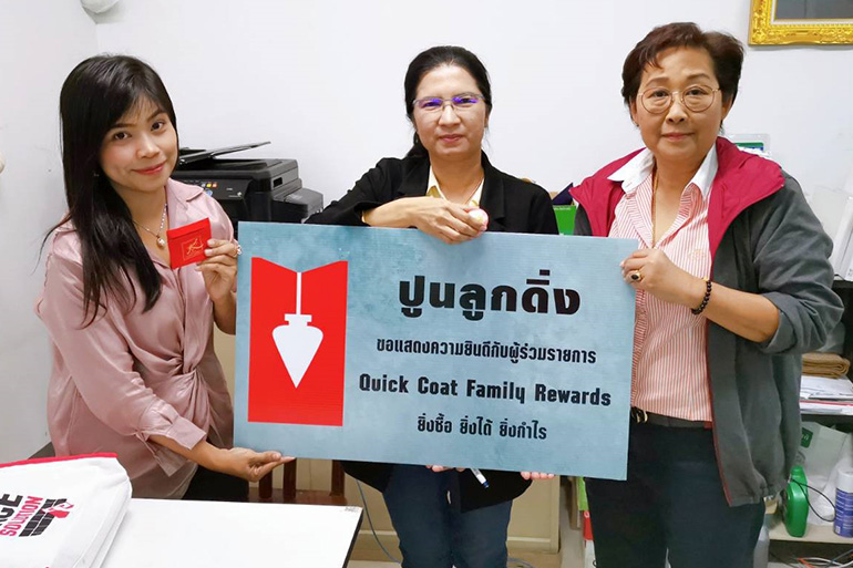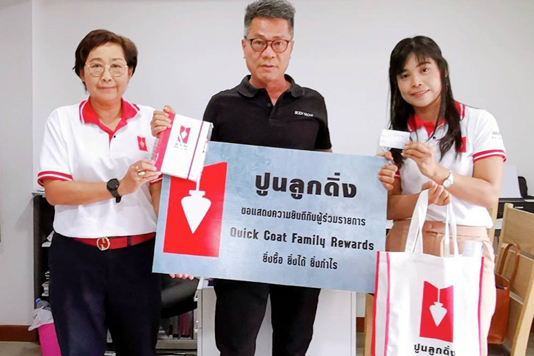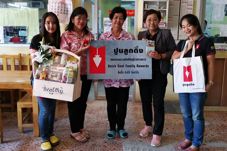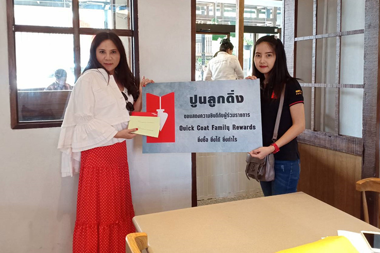 ฝ่ายขายของบริษัท ควิกโคท โปรดักส์ จำกัด ได้เป็นตัวแทนในการส่งมอบของรางวัลโปรแกรม Quick Coat Family Rewards ยิ่งซื้อ ยิ่งได้ ยิ่งกำไร