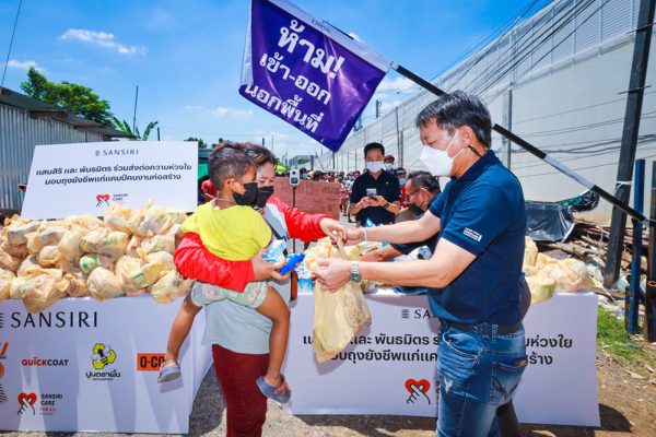 #ปูนลูกดิ่งไม่ทิ้งกัน ร่วมกับ แสนสิริ ส่งต่อความห่วงใย ร่วมสมทบบริจาคถุงยังชีพ จำนวน 200 ถุง ช่วยเหลือคนงานและครอบครัวในแคมป์ก่อสร้าง ณโครงการ บุราสิริปัญญาอินทรา ให้มีคุณภาพชีวิตที่ดีในช่วงวิกฤตเช่นนี้