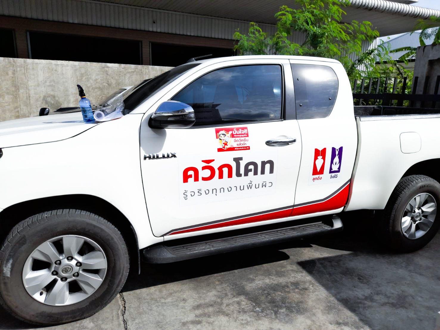 พร้อมตอกย้ำด้วยสติกเกอร์ We are Vaccinated! ติดรถบริษัทและรถขนส่งปูนทุกคัน เพื่อให้ลูกค้าทุกท่านมั่ นใจในการใช้บริการของปูนลูกดิ่ง ปลอดภัย 100%