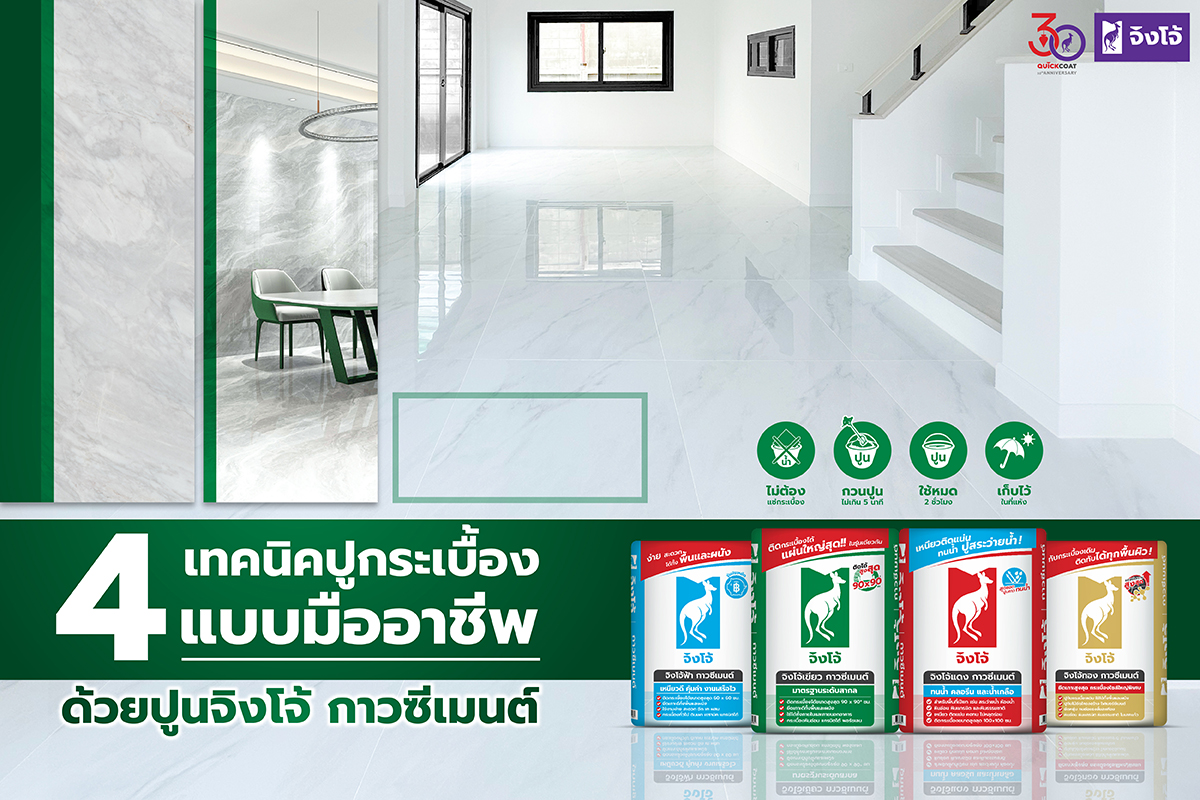 เปิดตัว “ปูนกาวซีเมนต์จิงโจ้เขียว” คุณสมบัติโดดเด่นด้านการยึดเกาะ ติดกระเบื้องได้ใหญ่สูงสุด 90×90 ซม. ดาวรุ่งใหม่หวังติด Top 5 ตลาดปูนกาว
