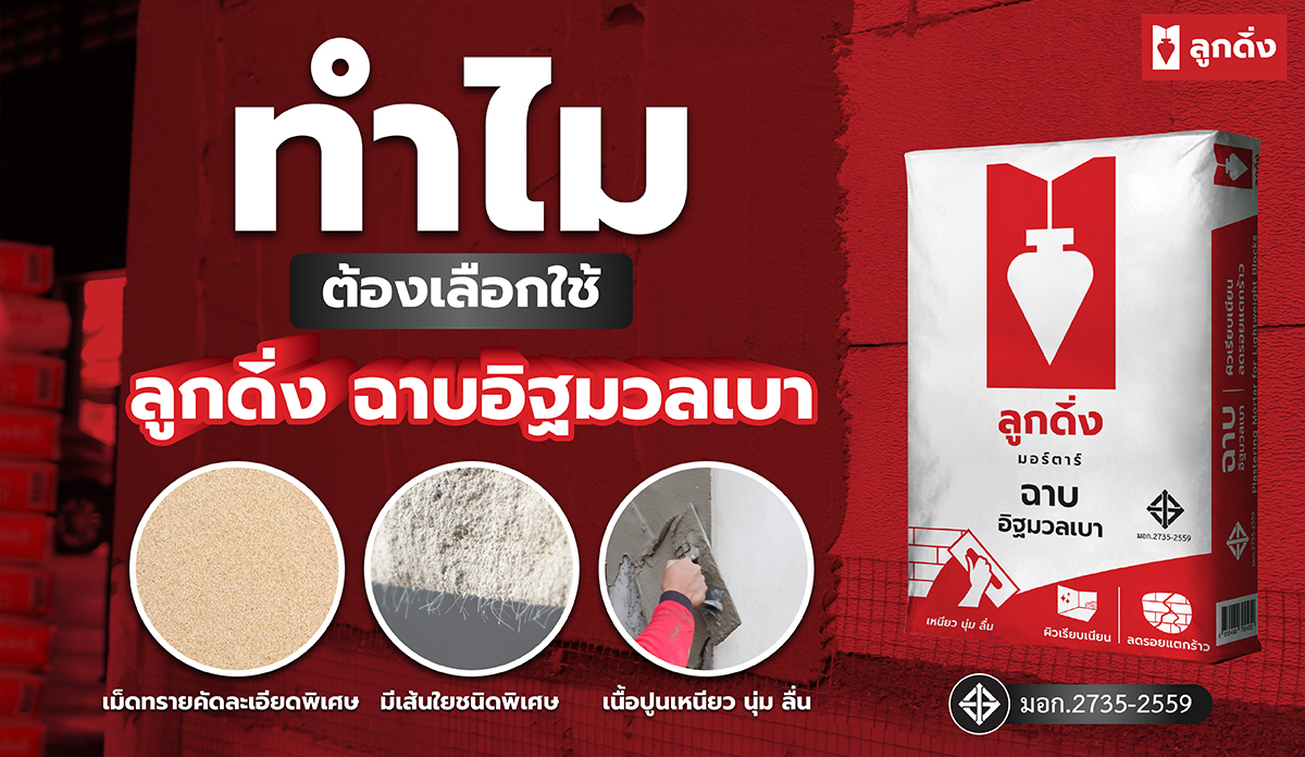 ปูนลูกดิ่ง ปูนฉาบคุณภาพของคนไทย ได้รับมาตรฐาน มอก. ตอกย้ำปูนฉาบที่ช่างก่อสร้างวางใจ