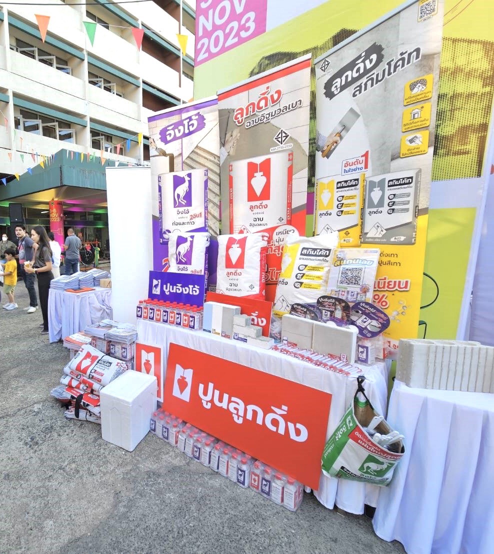 ภายในงานมีบูธสินค้าเกี่ยวกั บงานก่อสร้างและศิลปะมากมาย และยังมีนิทรรศการ กิจกรรม เสวนาวิชาการวิชาชีพต่างๆ เป็นการรวมตัวของ ช่าง ผู้รับเหมา สถาปนิก และรวมถึงผู้ที่สนใจในงานศิ ลปะในพื้น โดยบูธของปูนลูกดิ่งได้นำเสนอปู นลูกดิ่งฉาบอิฐมวลเบา ปูนจิงโจ้ 2อิน1 ก่อและกาว และ ปูนสกิมโค้ท ผ่านชิ้นงานจริง ซึ่งได้รับความสนใจอย่ างมากจากผู้ร่วมงาน งานนี้จัดขึ้นที่ โรงแรม อุบลโฮเต็ล จ.อุบลราชธานี วันที่ 3-5 พฤศจิกายน 66 ที่ผ่านมา