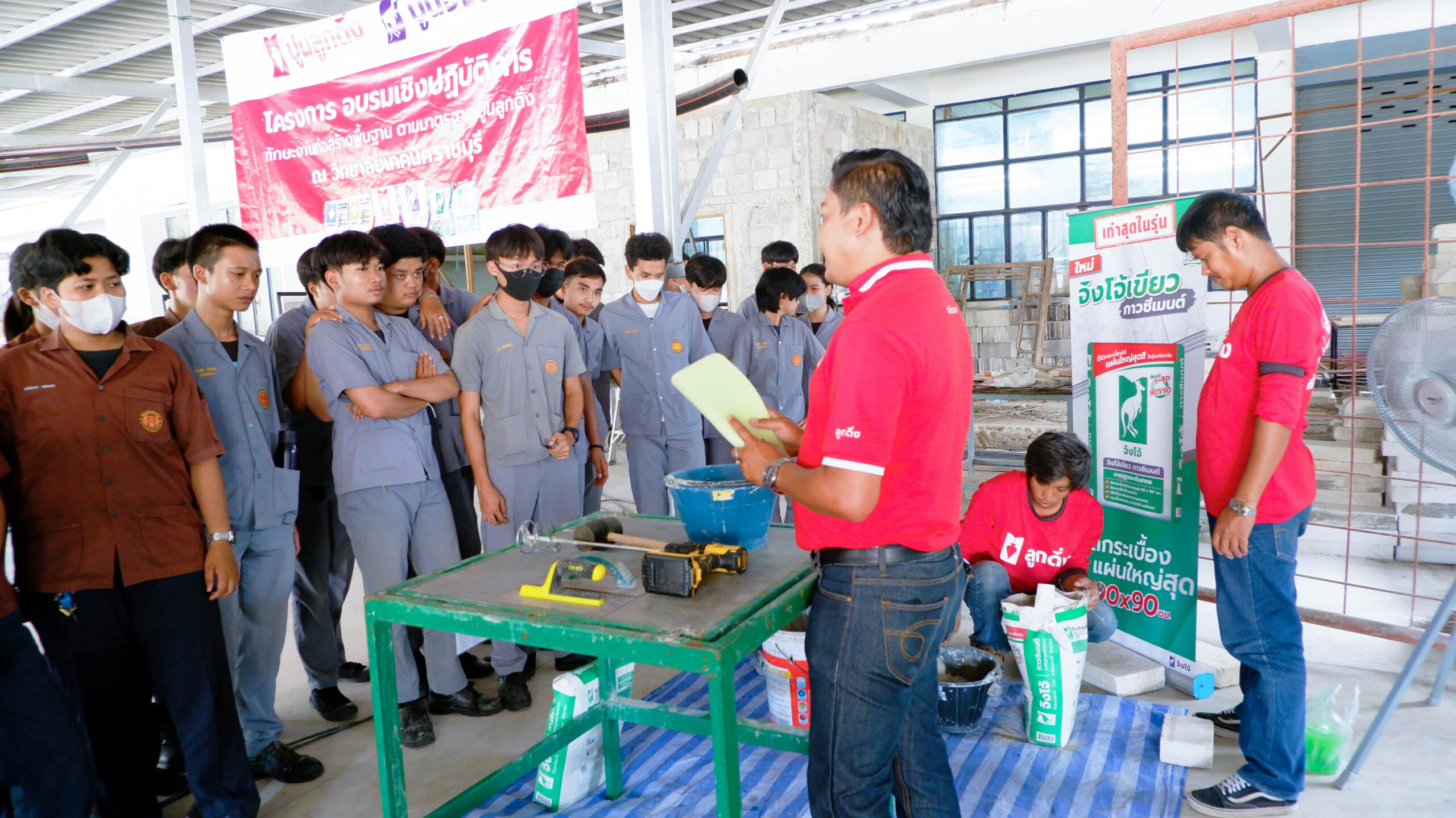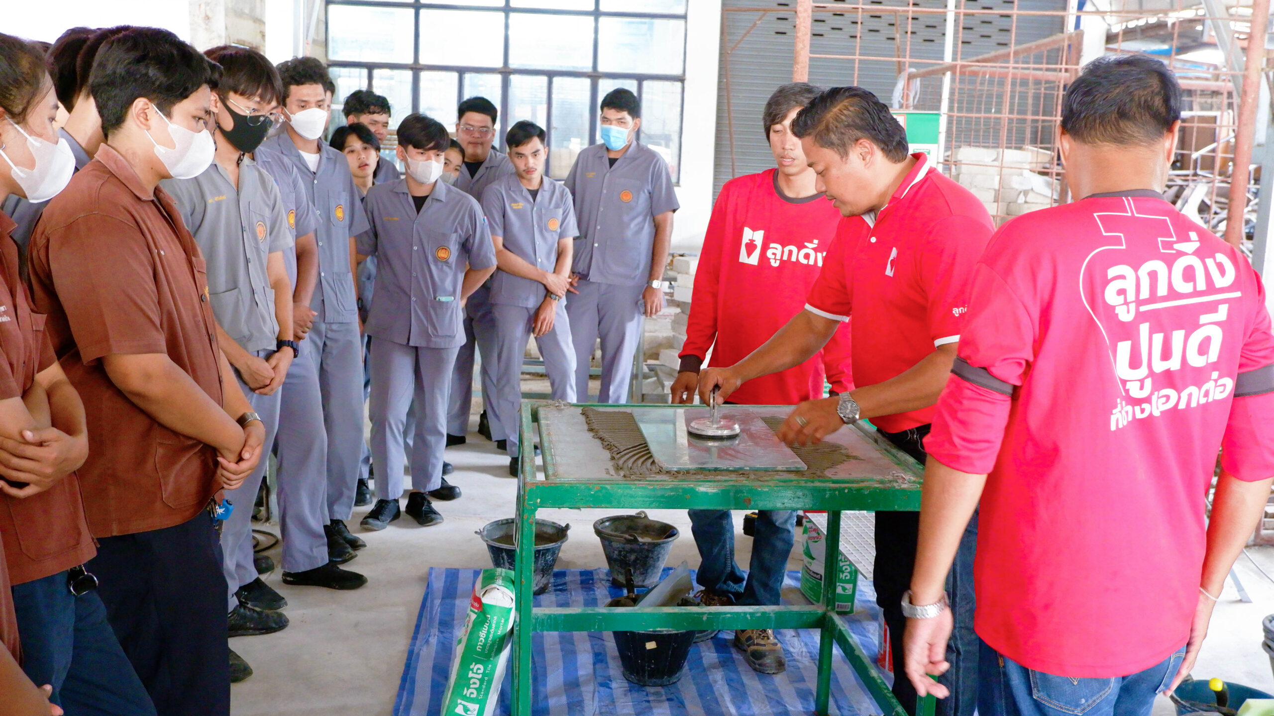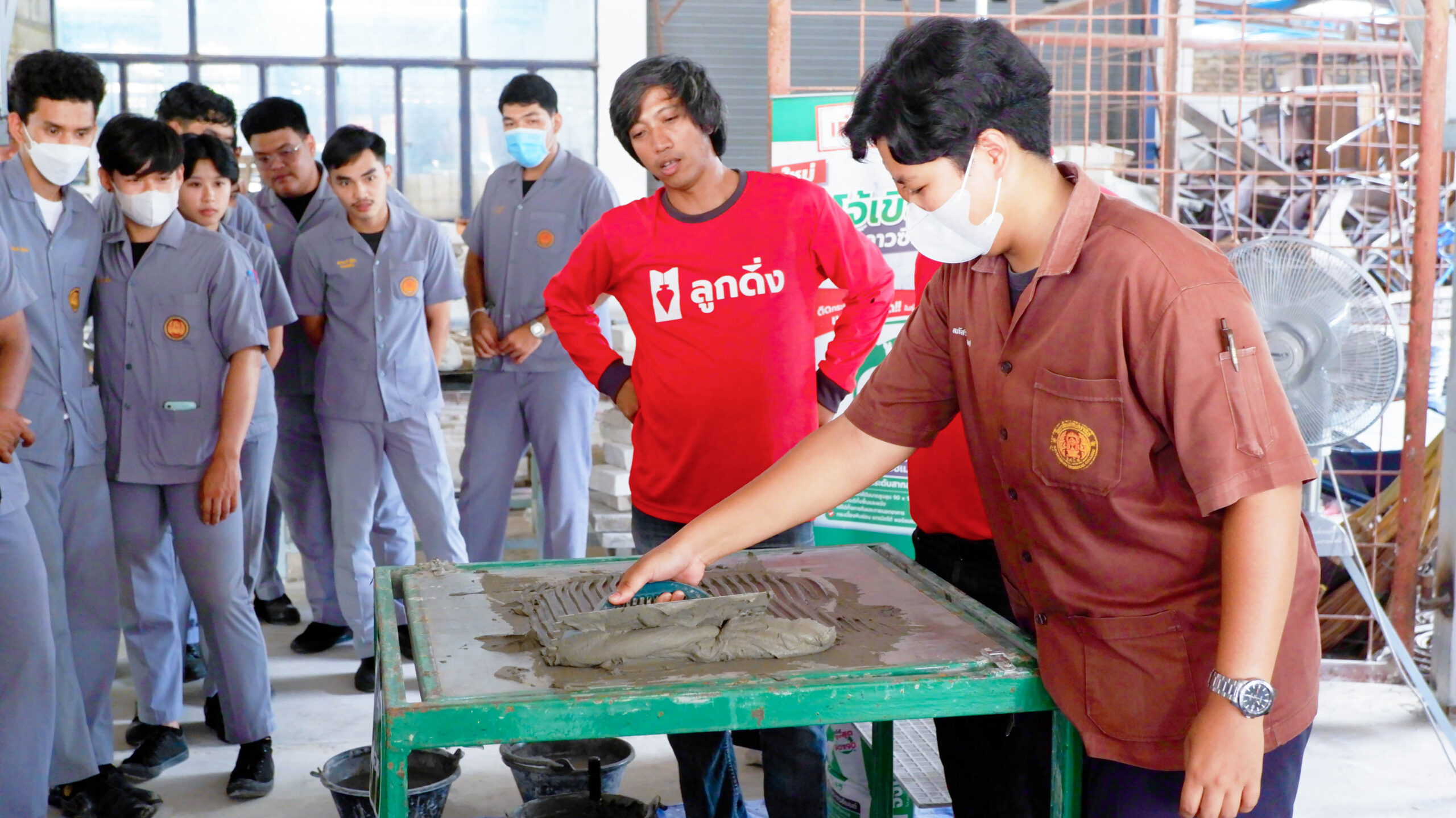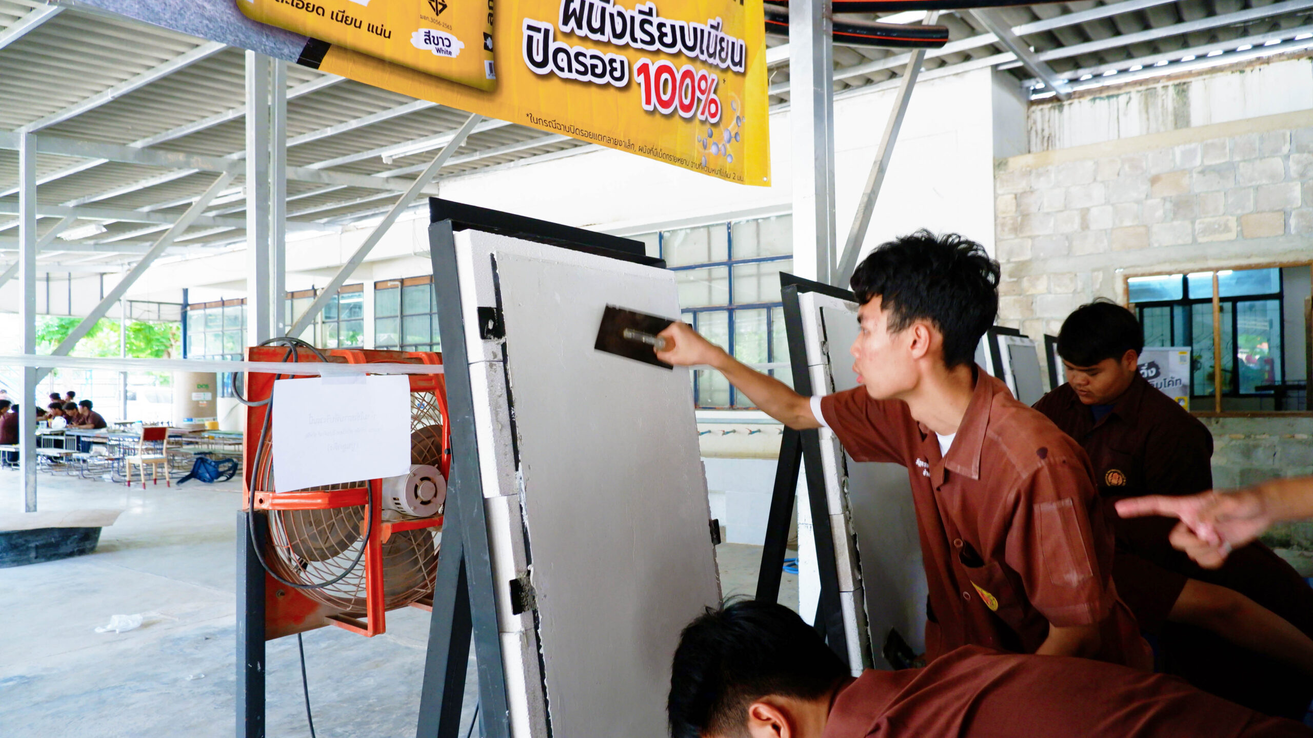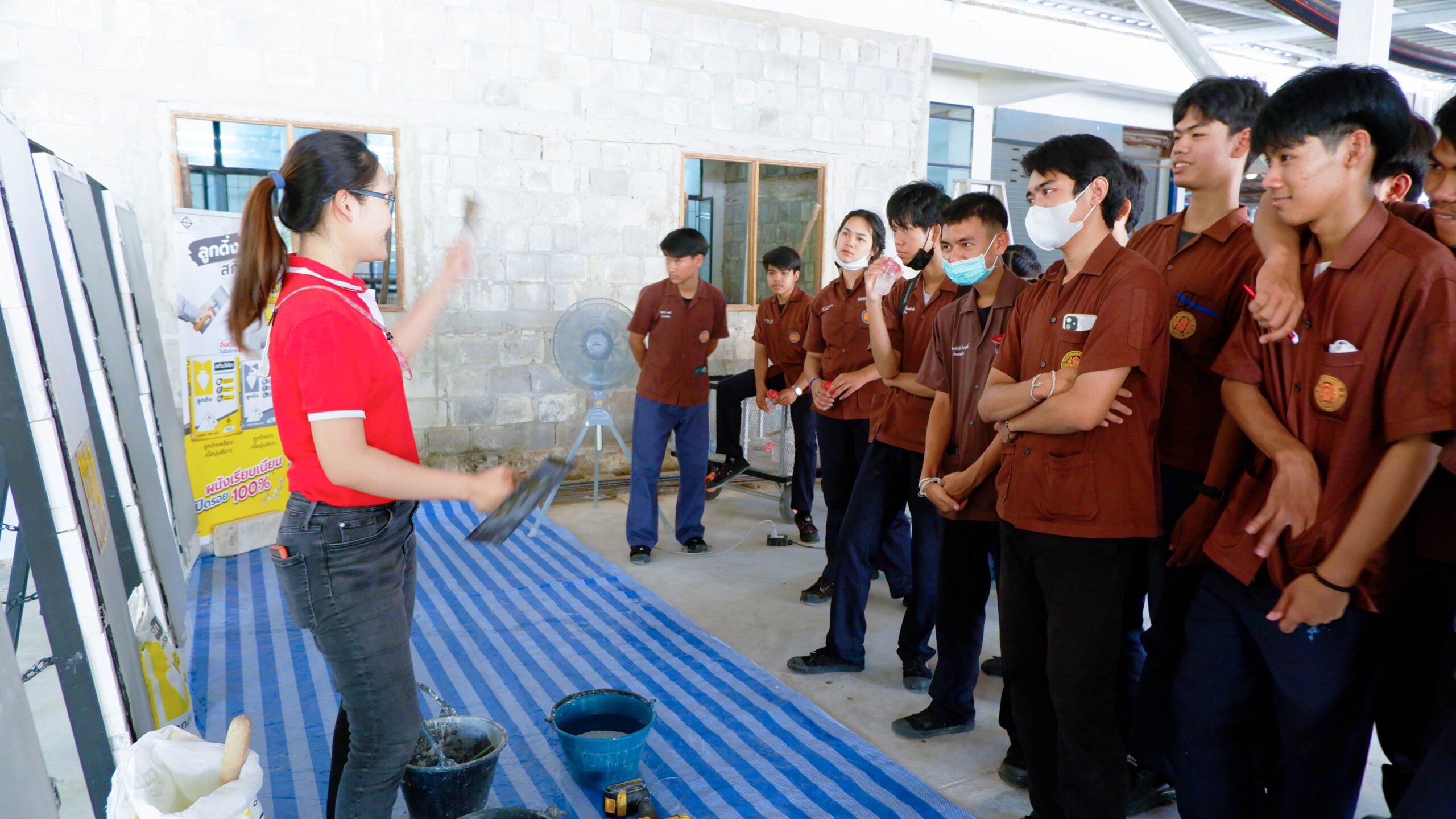 #ปูนลูกดิ่งสอนน้อง สอนเทคนิค ก่อ-ฉาบ สกิมโค้ท และกาวซีเมนต์กระเบื้อง ณ วิทยาลัยเทคนิคราชบุรี