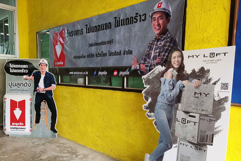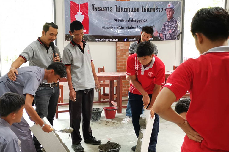 วิทยาลัยการอาชีพกาญจนาภิเษกหนองจอก พร้อมทั้งสอนงานปูนปั้นหลักสูตรอาชีพระยะสั้นตามโครงการไม่แตกแยกไม่แตกร้าว ซึ่งทาง ผอ.ของแต่ละที่ ให้ความสำคัญกับการอบรมเป็นอย่างมากและได้กล่าวขอบคุณ บริษัท ควิกโคท โปรดักส์ จำกัด ที่ให้การสนับสนุนเป็นอย่างดีเยี่ยม พร้อมทั้งมอบเกรียติบัตรให้สำหรับผู้ที่ผ่านงานอบรมการใช้ปูนลอฟท์ ตามโครงการไม่แตกแยกไม่แตกร้าว