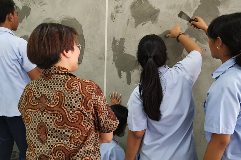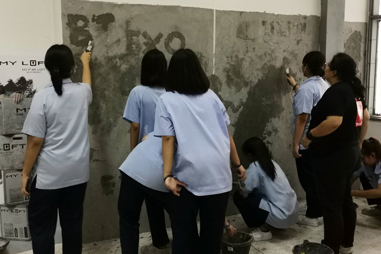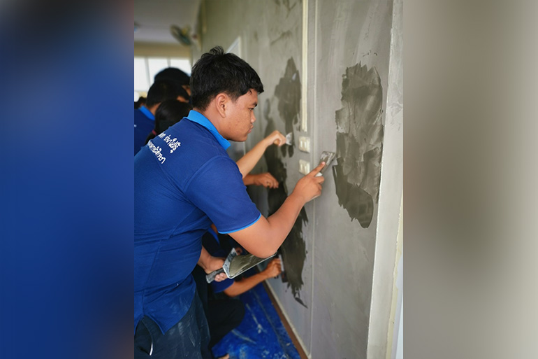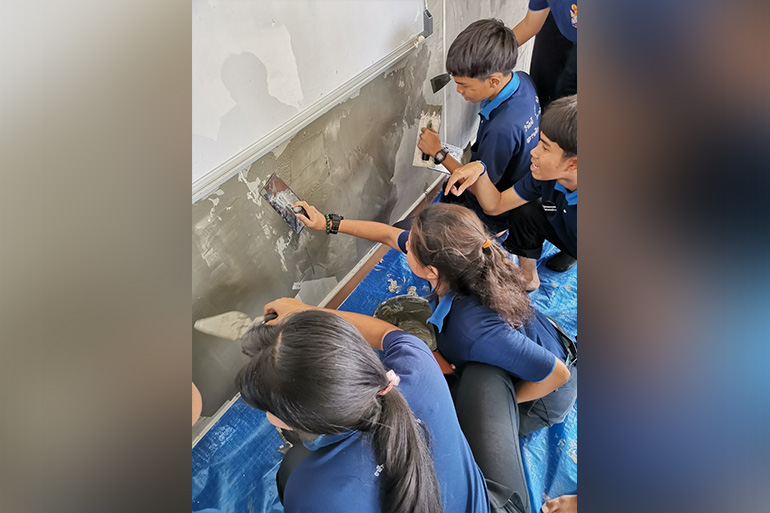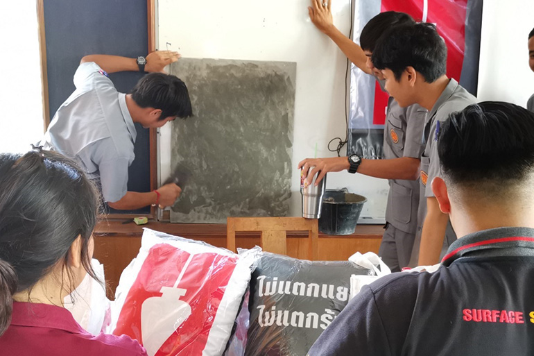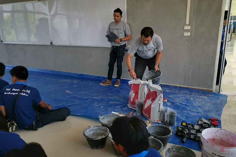 โครงการไม่แตกแยก ไม่แตกร้าว จัดอบรมหลักสูตรการใช้ปูน ร่วมกับนักศึกษา 4 สถาบันวิทยาลัย