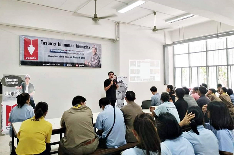โครงการไม่แตกแยกไม่แตกร้าว หนึ่งในโครงการกิจกรรมเพื่อสังคม ที่ทางบริษัท ควิกโคท โปรดักส์ จำกัด ได้ให้การสนับสนุนอบรมและสาธิตผลิตภัณฑ์เบื้องต้นเกี่ยวกับการใช้งานปูนลอฟท์ โดยให้ความรู้กับนักเรียน นักศึกษาในวิทยาลัย ดังต่อไปนี้