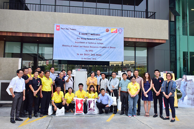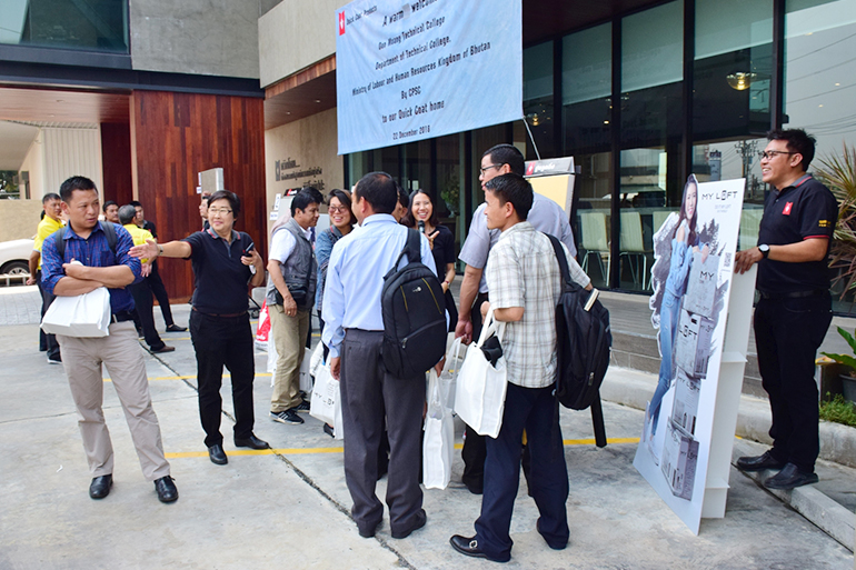 คณะอาจารย์จากวิทยาลัยเทคนิคดอนเมือง ได้เข้ามาเยี่ยมชม เมื่อวันเสาร์ที่ 22 ธันวาคมที่ผ่านมา บริษัท ควิกโคท โปรดักส์ จำกัด ได้มีโอกาสต้อนรับคณะข้าราชการระดับสูง จากประเทศภูฏาน นำโดย Mr.Norbu Wangchuk อธิบดีกรม อาชีวศึกษา กระทรวงแรงงานและทรัพยากรมนุษย์ และหน่วยงานภาคเอกชนที่เกี่ยวกับการก่อสร้าง รวมไปถึงคณาจารย์และเจ้าหน้าที่จากวิทยาลัยเทคนิคดอนเมือง โดยผ่านการแนะนำและประสานงานจาก อาจารย์ฉันทนา โพธิ์ครูประเสริฐ ผู้อำนวยการ วิทยาลัยเทคนิคดอนเมือง ในนามของ CPSC (Columbo Plan Staff College) อันเป็นองค์กรความร่วมมือระหว่างประเทศสมาชิกในการแลกเปลี่ยนเชิงวิชาการ เพื่อเข้าเยี่ยมชมบ้านควิกโคทของเรา และแลกเปลี่ยนมุมมองเกี่ยวกับโครงการไม่แตกแยก ไม่แตกร้าว อันเป็นโครงการสนับสนุนทางวิชาการ ด้วยการปฏิบัติงานจริง เพื่อสร้างคุณค่า ปลูกอนาคตให้กับน้องๆนักเรียนอาชีวะสายก่อสร้าง ตามคอนเซ็ปต์ของชาวควิกโคทที่อยู่เคียงข้างช่างทุกสถาบัน
