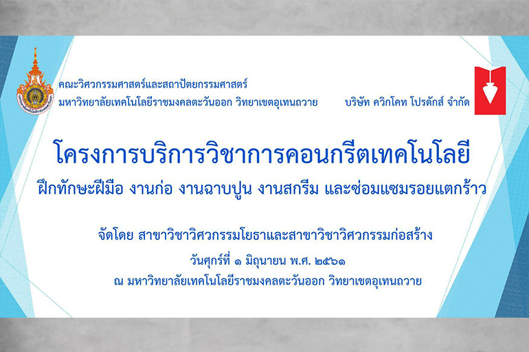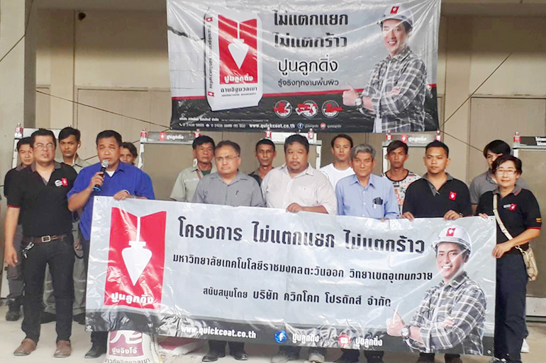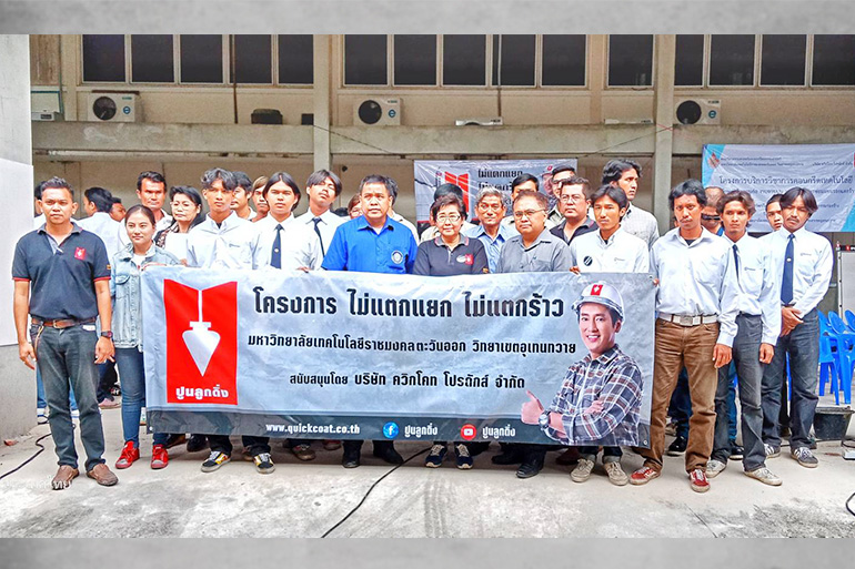 บริษัท ควิกโคท โปรดักส์ จำกัด นำทีมงานเทคนิคและช่างครบทีม เข้าให้การสนับสนุน “”โครงการไม่แตกแยกไม่แตกร้าว””ให้กับสถาบันการศึกษา มหาวิทยาลัย เทคโนโลยีราชมงคลตะวันออก วิทยาเขตอุเทนถวาย