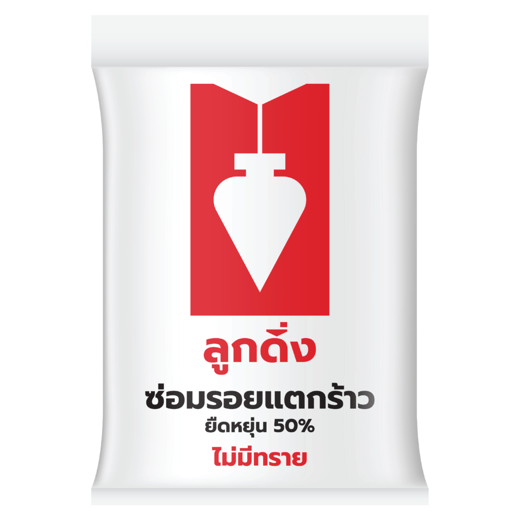 ลูกดิ่ง ปูนซ่อมรอยแตกร้าว (ชนิดมีเม็ดทราย) สำหรับใช้ป้องกันการแตกร้าวซ้ำ บริเวณผนัง มีความยืดหยุ่นสูงถึง 50% เหมาะสำหรับผนังปูนฉาบทั่วไป มีค่ายึดเกาะดีเยี่ยม โดยใช้กลิ้งบริเวณผนังที่แตกร้าว หลังจากขั้นตอนการเก็บงานซ่อมเบื้องต้นอย่างถูกวิธี สามารถใช้แก้ไขรอยแตกร้าวได้หลายชนิด เช่น ผิวปูนแตกลายงาที่ไม่มีการหลุดร่อน รอยแตกเป็นเส้นวิ่งลามไปยังจุดต่าง ๆ หรือรอยแตกจนก้อนอิฐขาด เป็นต้น สามารถกลิ้งทับบนพื้นผิวคอนกรีต กระจก ไม้ และพลาสติก เนื้อปูนสีขาว มีเม็ดทราย ให้ผิวหน้าปูนเรียบเนียนกลืนกับผิวปูนเดิม ใช้ได้ทั้งงานภายในและภายนอก